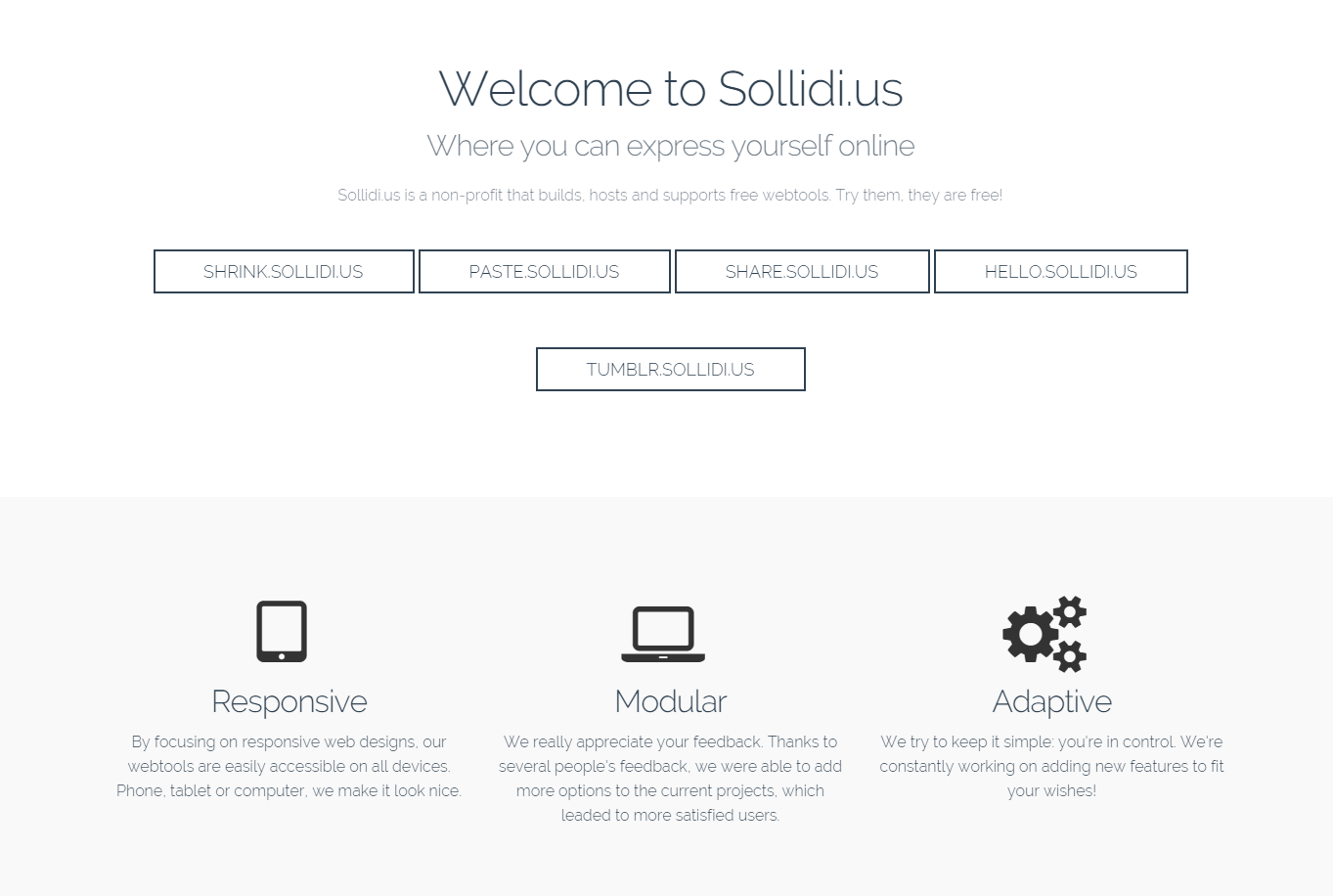 Sollidi.us is een non-profit die gratis handige webtools bouwt, host en ondersteunt. een geheel van handige webtools.